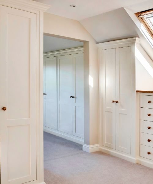 Each piece, from fitted shelving and hallway cabinetry to full dressing rooms, is shaped by the building’s architecture and the life within it.