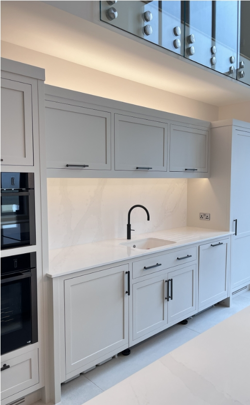 Glass-fronted shelving and clever compartments for shoes and accessories add both function and beauty. Subtle lighting enhances visibility and mood, ensuring your collection is always beautifully displayed. The result is a space that feels balanced, practical and quietly luxurious.