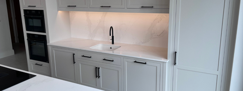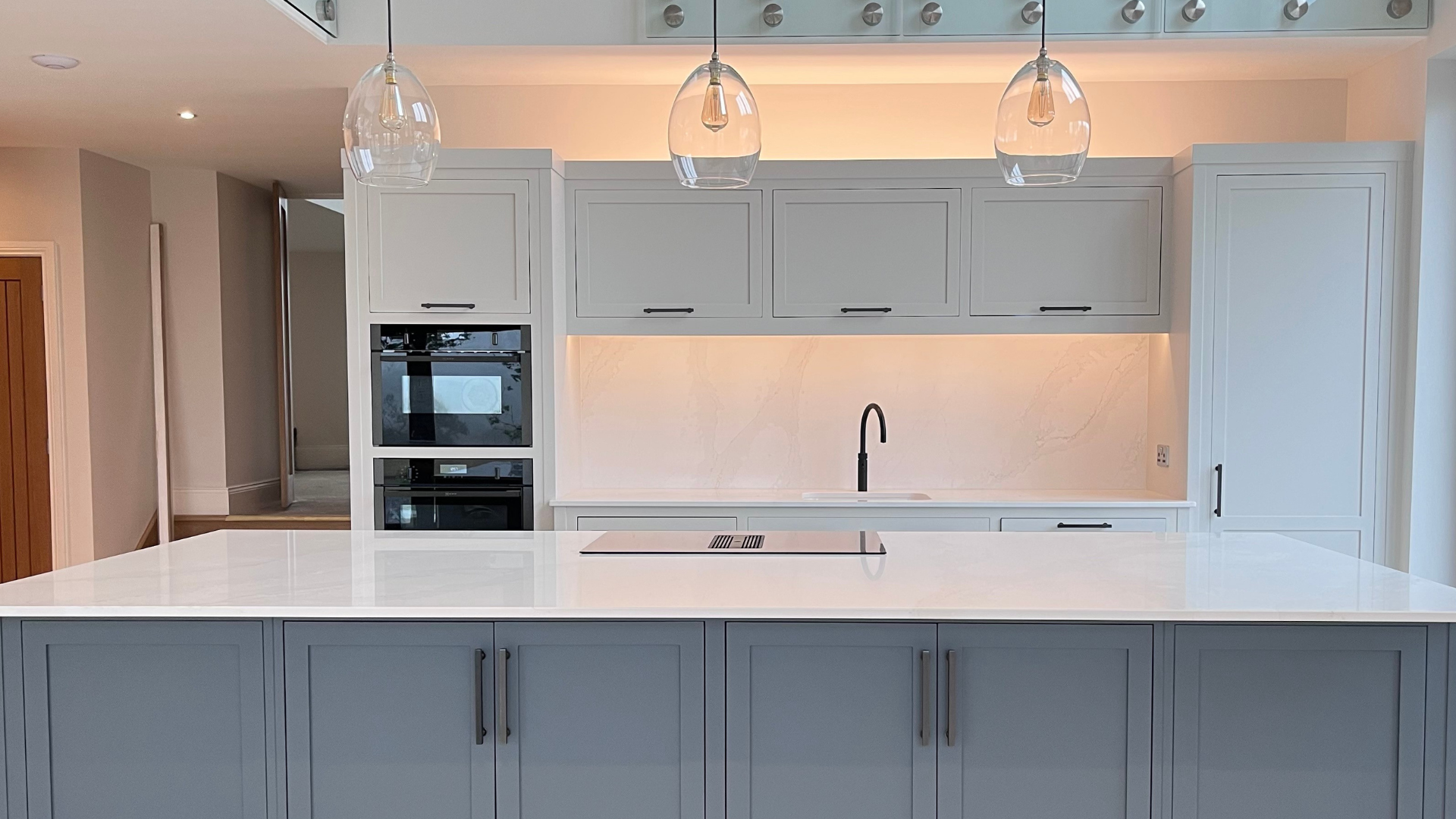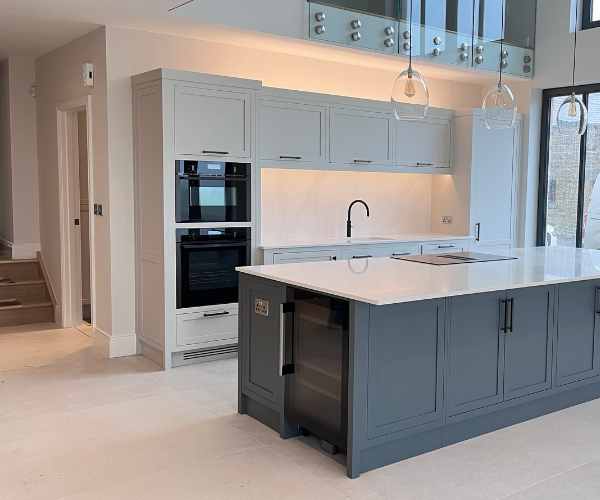 Defined by clean lines and elegant contrast, the Blanchland project embodies refined simplicity. Hand-painted, in-frame slim shaker cabinetry in Farrow & Ball ‘Cornforth White’ forms a calm architectural backdrop, while the island in ‘Down Pipe’ introduces depth and contemporary character, this project combines timeless craft with modern clarity – a kitchen designed for effortless living.