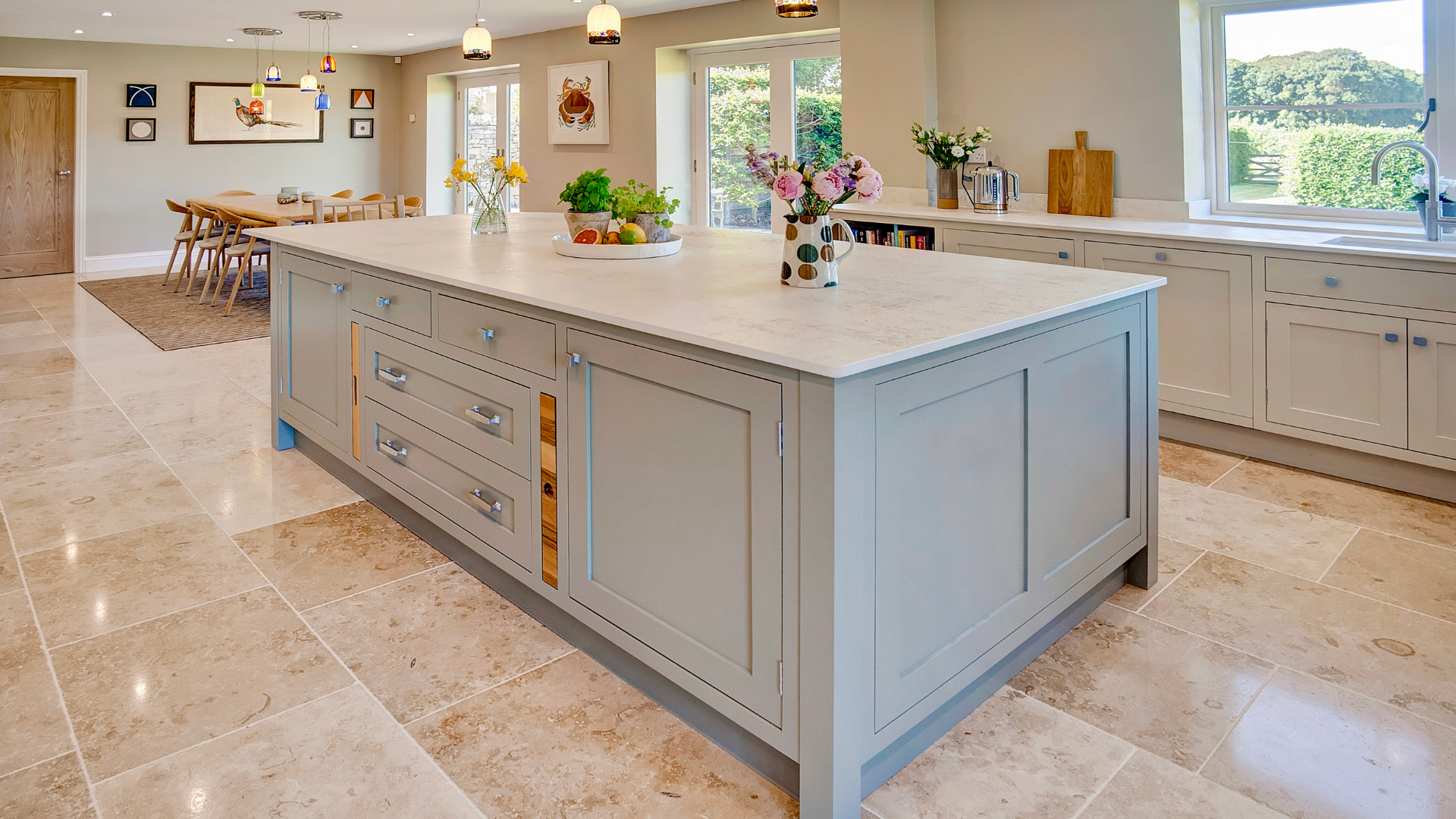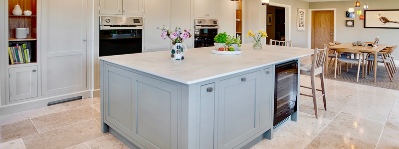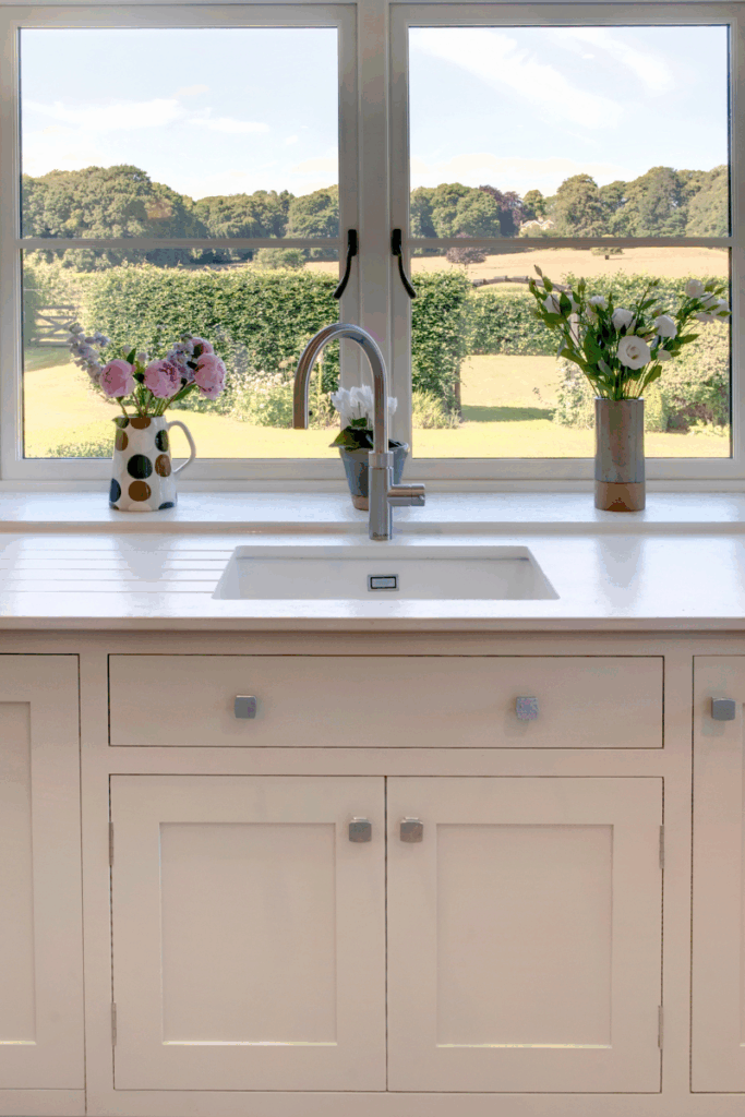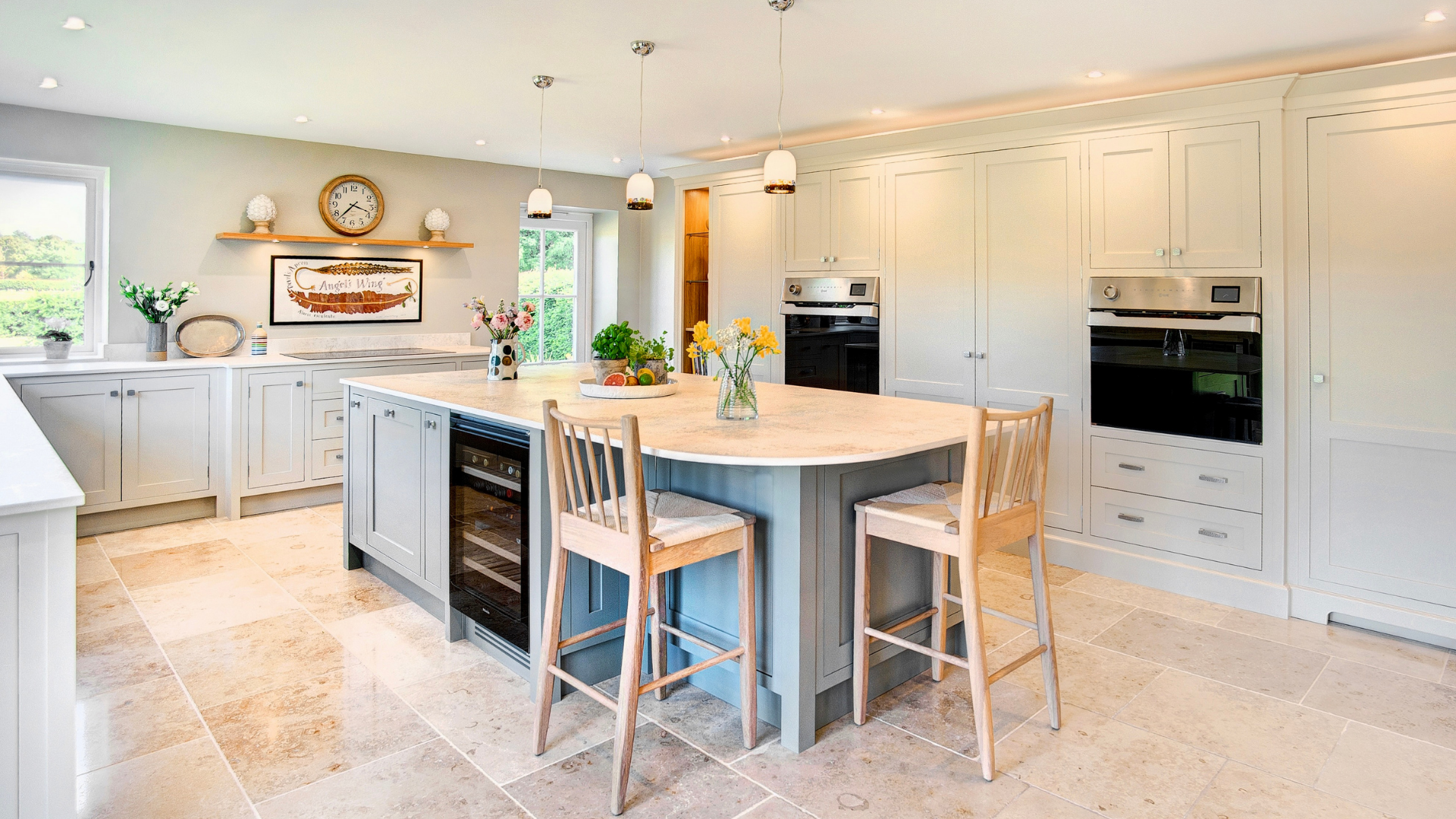 Soft, natural tones and subtle textural contrast define the Ford project- a space where craftsmanship and comfort live harmoniously side by side. With cabinetry, hand-painted in Farrow & Ball ‘Shaded White’ and the island in ‘Pigeon’ adding a gentle depth that grounds the room, the result is a kitchen for real life – elegant, enduring and unmistakably Alexander Carrick.